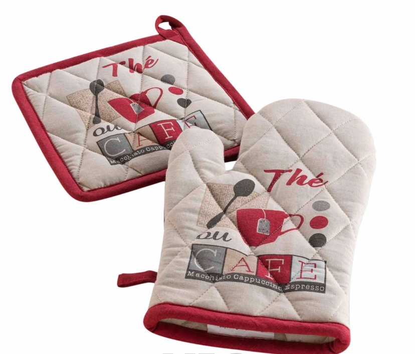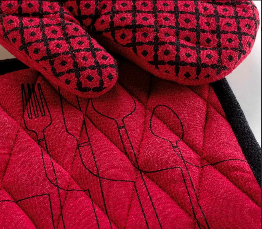 Σετ πιάστρα-γάντι Σχ. Cuisiline red 100% cotton