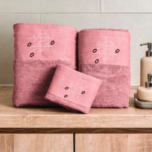 Σετ πετσέτα 3τμχ με κέντημα στη φάσα Σx.Scarlet σε κουτί 430 gsm 100% cotton