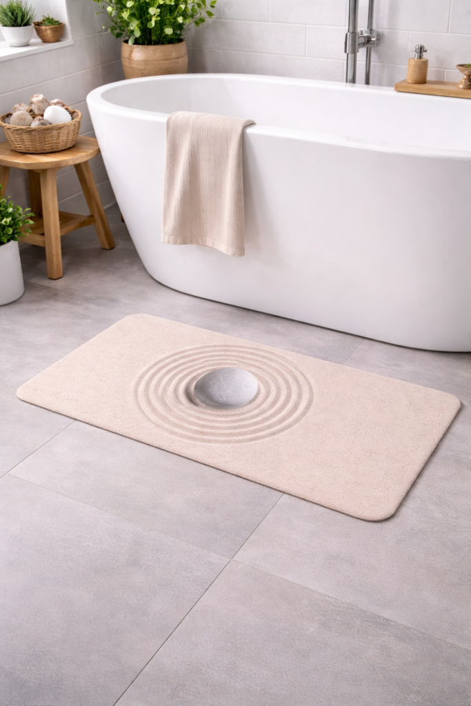Κουρτίνα μπάνιου με κρίκους Σχ.Berta 180x200cm + πατάκι Shaggy 50x70cm 100% pol.